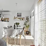 Gasten kunnen gebruik maken van een oven en een vaatwasser in een ingerichte kitchenette van deze woning.
